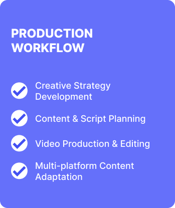 Video production giúp thương hiệu truyền tải thông điệp một cách trực quan và thu hút trên các nền tảng Digital và Social Commerce. Từ phát triển ý tưởng, xây dựng kịch bản đến quay dựng và hậu kỳ, chúng tôi sản xuất các video marketing phù hợp với từng chiến dịch, giúp thương hiệu gia tăng khả năng thu hút, tương tác và chuyển đổi.